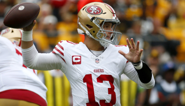 El quarterback de los San Francisco 49ers, Brock Purdy, llevó botas con clavos que promocionaban la organización benéfica cristiana Samaritan's Purse durante el partido del lunes por la noche contra los Carolina Panthers.